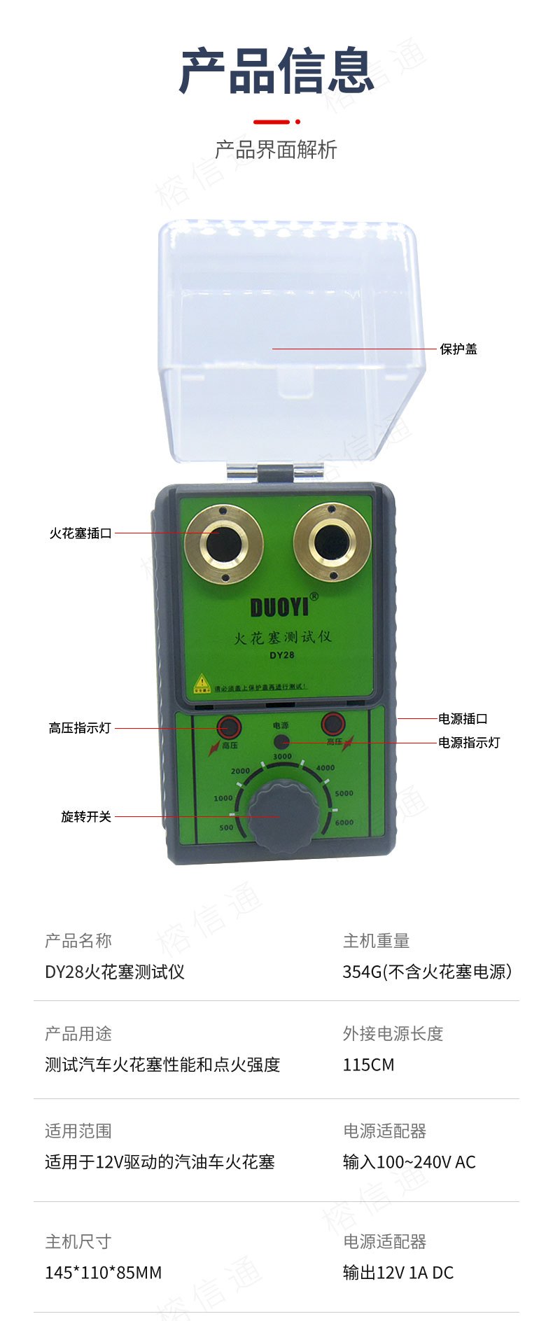 汽车火花塞测试仪跳火 双孔火嘴高压包点火系统检测仪试验台DY28