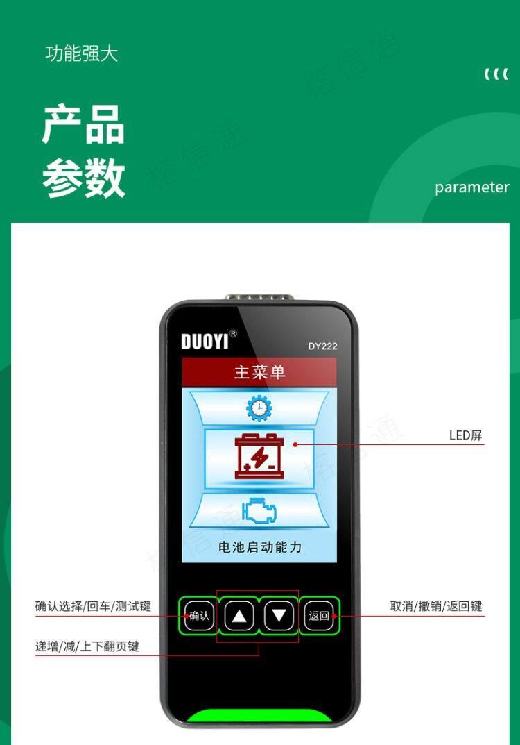 多一DY222蓄电池检测仪蓄电池测试仪电瓶检测仪启动寿命内阻测试