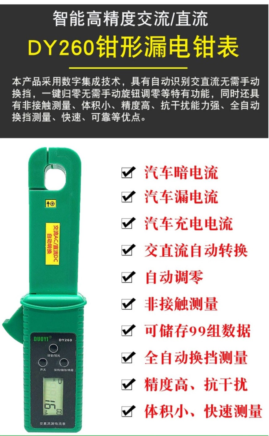 汽车漏电测试仪检测仪DY260静态暗电流钳表汽车微电流跑电量汽修