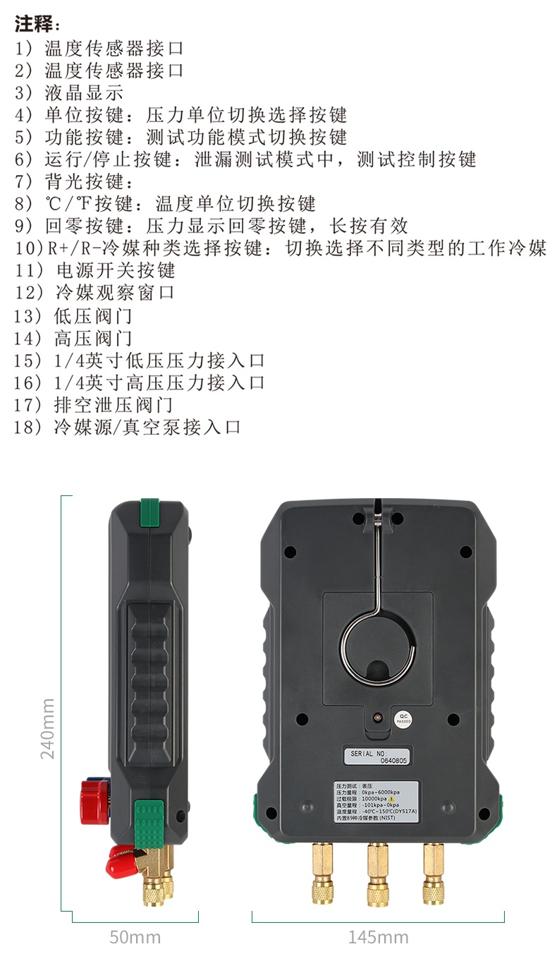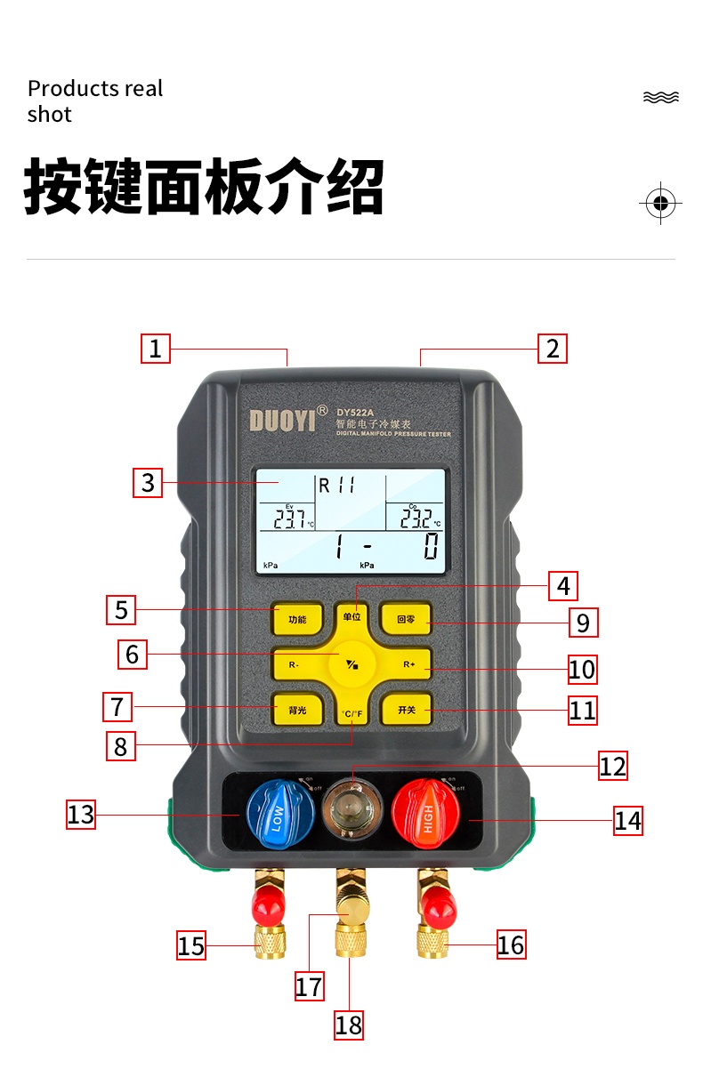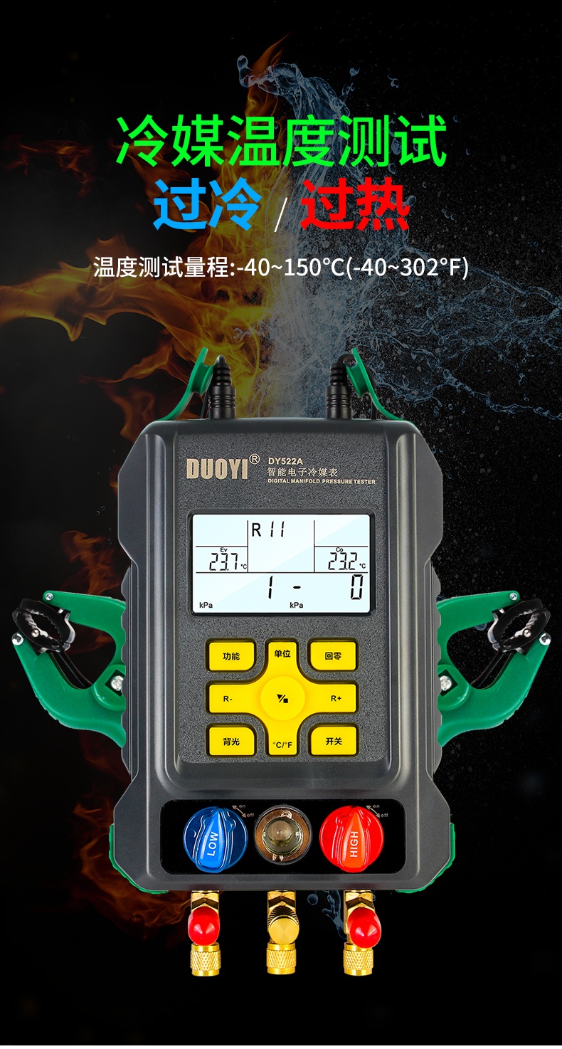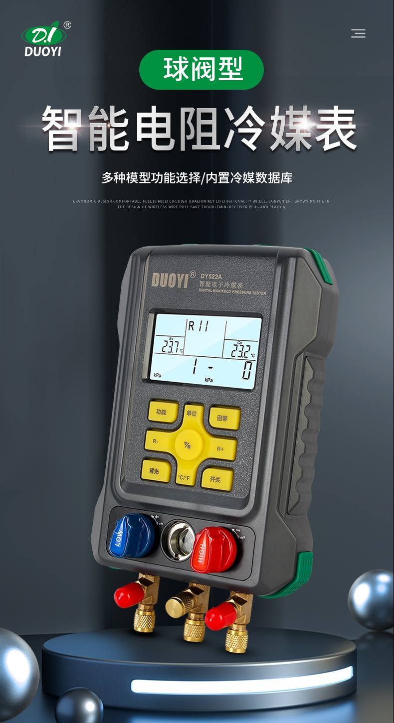 电子冷媒表空调充氟加液制冷维修汽车空调加氟压力表DY522/DY522A